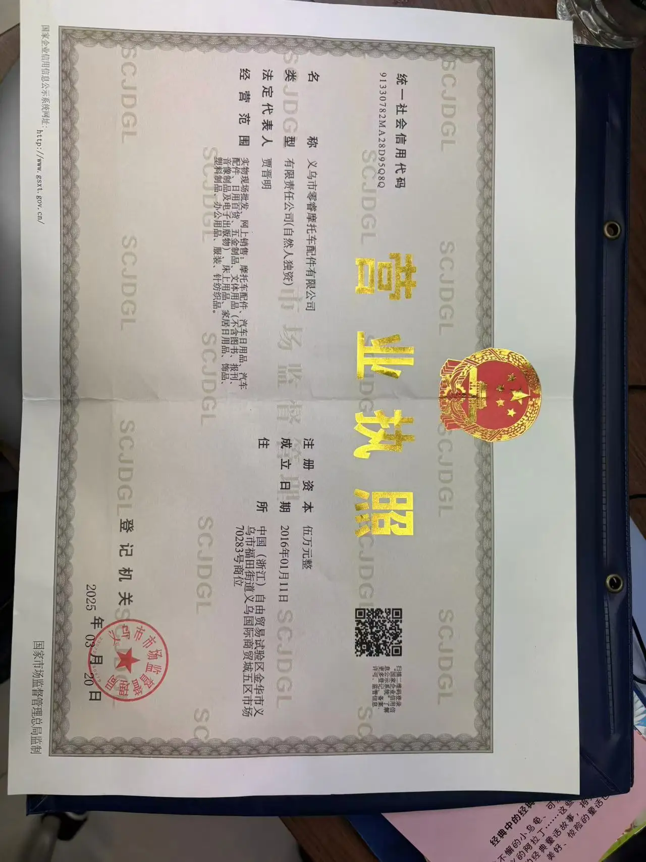 Registered address : Commercial Space No. 70283, Fifth District Market, Yiwu International Trade City, Futian Street Jinhua Zhejiang China